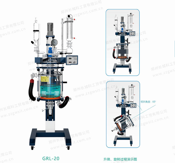 20L升降式玻璃反應釜釜體與釜蓋分離,釜體可升降,亦可旋轉120°,便于加料和釜體清洗,玻璃件接口使用法蘭連接,且拆卸方便,用于化學、精細化工、生物制藥新材料合成等實驗、中試及生產。可與循環水式多用真空泵、隔膜真空泵、低溫循環器、恒溫循環器、密閉制冷加熱循環裝置等配套使用。